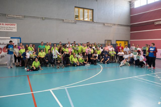 El Pabellón Municipal de La Aceña ha acogido este viernes el I Encuentro Deportivo Intercentros para personas con discapacidad intelectual en el que han participado más de 60 usurarios de los centros Apandis de Lorca, José Moya de Totana y Centro de Día de Mazarrón.