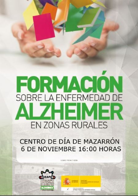 El Centro Municipal de Día de Personas Mayores de Mazarrón acoge el próximo lunes 6 de noviembre, a las 16:00 horas, una charla informativa sobre la enfermedad de Alzheimer. La actividad es organizada por la Confederación Española de Alzheimer (CEAFA) en colaboración con la Concejalía de Política Social del Ayuntamiento de Mazarrón.