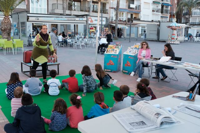 La Biblioteca municipal sale a la calle para fomentar la lectura entre los más jóvenes. La alcaldesa, Alicia Jiménez, anima a los pequeños lectores durante una jornada englobada dentro de los actos conmemorativos del Día Mundial del Libro. La actividad tuvo lugar en la tarde de este miércoles en la Plaza de las Comunidades Autónomas de Puerto de Mazarrón.Un cuentacuentos completó la agenda programada para esta cita.