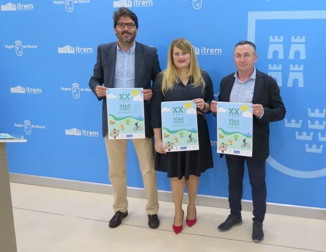 El director general del Instituto de Turismo, Manuel Fernández-Delgado, junto a la alcaldesa de Mazarrón, Alicia Jiménez y el gerente del Consorcio de las Vías Verdes de la Región de Murcia, Juan Soria, presentó hoy el XX Día Nacional de Las Vías Verdes.