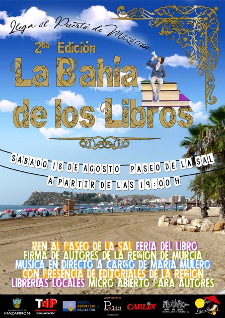 Tras el éxito del año pasado, este sábado 18 de agosto regresa a Puerto de Mazarrón 'La Bahía de los Libros', un encuentro literario que organiza la Concejalía de Cultura del Ayuntamiento de Mazarrón. La cita tendrá lugar a partir de las 19:00 horas, a escasos metros del mar, en el Paseo de la Sal del Puerto Deportivo.