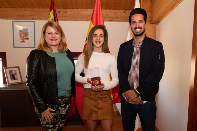 La alcaldesa Alicia Jiménez recibe a la atleta mazarronera Miriam Sánchez Celdrán que el pasado mes de enero se proclamaba campeona regional absoluta