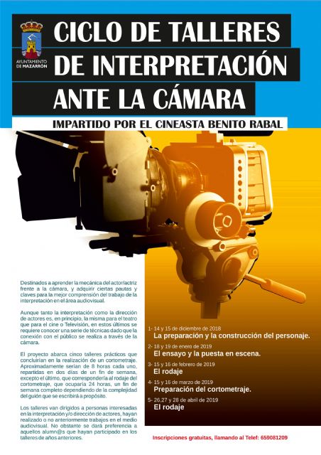 Desde finales del año pasado un grupo de 25 alumnos trabaja en un nuevo ciclo de talleres dedicado a la interpretación, habiendo trabajado la preparación y construcción de un personaje, el ensayo y la puesta en escena. Del 26 al 28 de abril está programado el rodaje del nuevo cortometraje