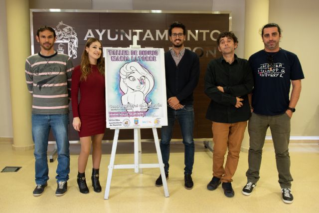 El taller ha sido presentado en dependencias municipales por Patricio Sánchez acompañado de la propia ilustradora María Latorre y de los educadores David Arellano y David Gorreto. Asimismo, Francisco Sáez, técnico de Juventud, ha informado del viaje a Cartagena para asistir al VII Salón de Manga, otra de las actividades que organiza la Concejalía y que contará igualmente con la participación de María Latorre. Se llevará a cabo los días 11 y 12 de mayo. Inscripciones en la Concejalía de Juventud.