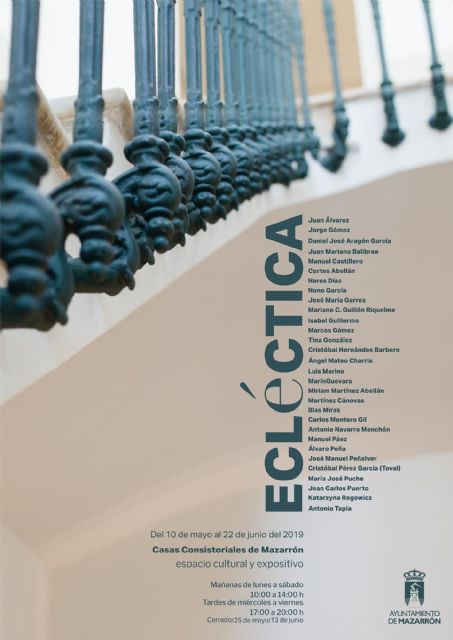 'Ecléctica' podrá verse hasta el 22 de junio en Casas Consistoriales en horario de mañana de 10 a 14 horas de lunes a sábado y en horario de tardes de miércoles a viernes de 17:00 a 20:00 horas. La sala permanecerá cerrada los días 25 de mayo y 13 de junio.