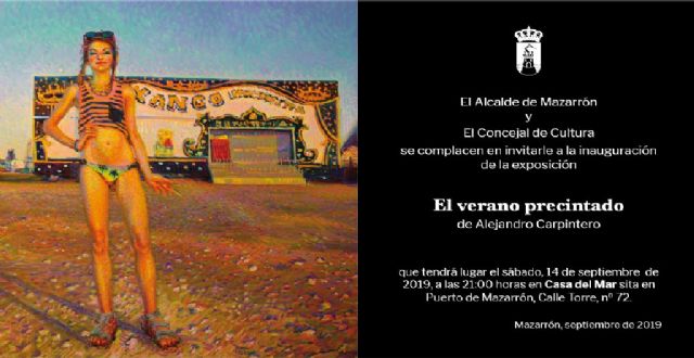 Este sábado 14 de septiembre, La Casa del Mar de Puerto de Mazarrón acoge la inauguración de la exposición 'El verano precintado' de Alejandro Carpintero. Se trata de una muestra pictórica compuesta por algunas obras de este artista madrileño que se ha convertido ya en uno de los jóvenes talentos emergentes dentro del panorama pictórico español.