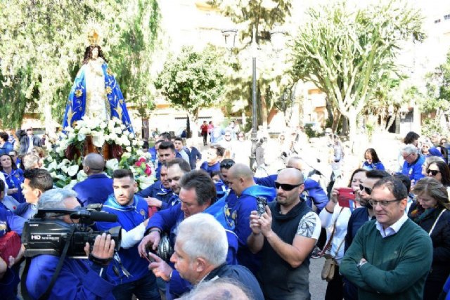 La imagen de la Purísima Concepción que se venera en la ermita de Bolnuevo, conocida cariñosamente como 'Virgen del Milagro', ha llegado esta mañana al Santuario que lleva su nombre para pasar toda la semana en Mazarrón antes de su regreso al popular barrio de pescadores el próximo domingo 17, cuando el pueblo entero y cientos de turistas la acompañan en la multitudinaria Romería del Milagro.