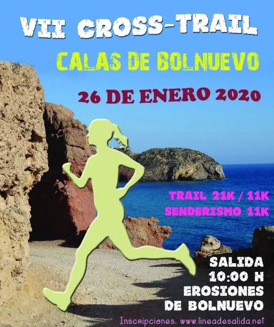 El Club Deportivo Bahía de Mazarrón, en colaboración con el Ayuntamiento de Mazarrón, organiza el VII Cross-Trail “Calas de Bolnuevo”, a partir de las 10:00h. con salida y meta en la explanada de las erosiones de Bolnuevo