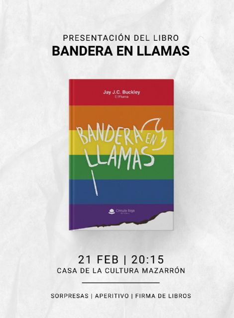 Jay Buckley, un joven británico afincado en Mazarrón, presenta su libro 'Bandera en llamas' este viernes 21 en el salón de actos del Centro Cultural a partir de las 20:15 horas. La novela cuenta la historia de la vida del joven que supone un alegato en contra de la discriminación y la desigualdad social, especialmente la que sufre el colectivo LGTBI.