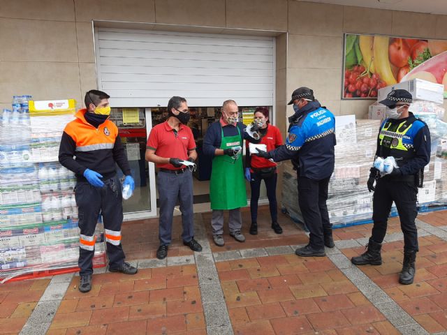 Los agentes y efectivos han procedido a su reparto desde las 6 de la mañana en comercios y establecimientos abiertos al público, puntos estratégicos como las rotondas de El Portichuelo, los Barcos Fenicios y Cañada de Gallego; así como en las estaciones de autobuses de Mazarrón y Puerto.