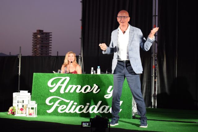 Este jueves se inauguró con gran éxito el ciclo de conferencia 'Amor y Felicidad' que durante el mes de julio se celebrará en el mirador 'Agustín López Cano' de la playa de Bahía. El coach y experto en marketing, Ángel López Naranjo, fue el encargado de arrancar con este ciclo con una edificante conferencia en la que enseñó a los presentes, cerca de un centenar de personas, a trabajar sus actitudes y voluntades ante los cambios y retos que nos presenta la sociedad actual.