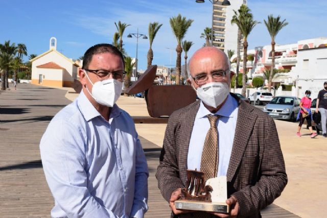 Gaspar Miras ha entregado una escultura del Barco Fenicio de Mazarrón al autor en reconocimiento a la 'Fundación Méjica' por la deferencia de traer hasta el municipio estas obras que ahora continuarán su periplo por otras ciudades de la geografía española.