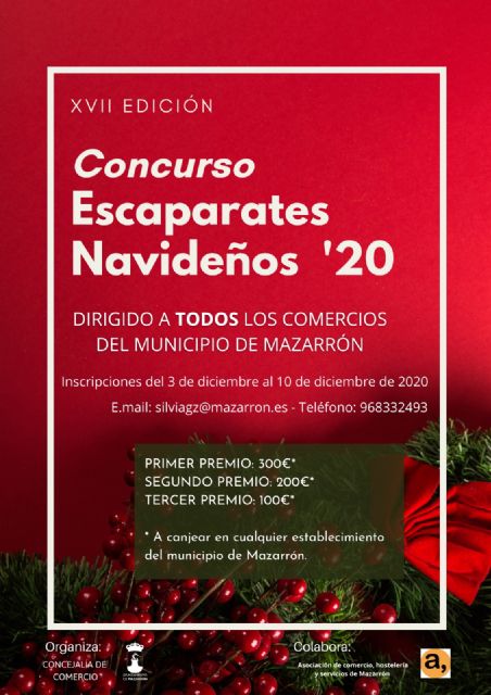 Silvia García ha explicado que "los interesados pueden inscribirse cumplimentando la inscripción alojada en la web mazarron.es y enviarla a la dirección silviagz@mazarron.es o llamando a la Concejalía de Comercio". Los escaparates, ha añadido la edil, "serán valorados por su originalidad, creatividad, iluminación e innovación por un jurado compuesto por un miembro de la concejalía, otro de ACOMA y un tercero con conocimientos artísticos y creativos sobre escaparatismo".