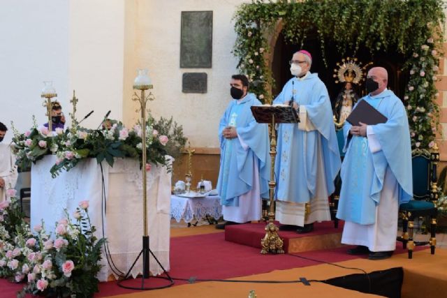 Esta tarde se ha celebrado en la Plaza del Convento, la Solemne Eucaristía en honor a la Purísima Concepción. La patrona de Mazarrón ha salido a las puertas de su Santuario para esta misa de campaña que se ha realizado bajo las medidas sanitarias pertinentes y con el fin de que pudieran asistir a la misma un mayor número de fieles que si se hubiera celebrado en el interior del templo