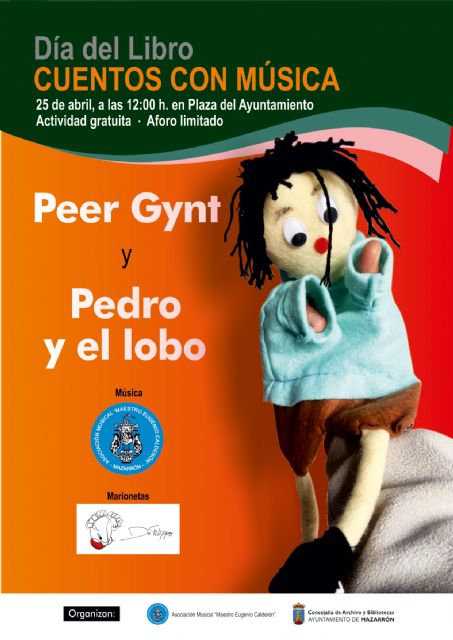 El segundo cuentacuentos, que versará sobre las historias de Peer Gynt y Pedro y el Lobo, se celebrará el domingo 25 de abril en la Plaza del Ayuntamiento a las 12 horas y será un cuentacuentos especial que contará con marionetas y un fondo musical a cargo de la Asociación Musical 'Maestro Eugenio Calderón' de Mazarrón. Ambas actividades son gratuitas y tendrán aforo limitado.