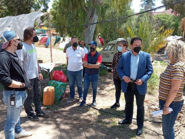 El alcalde Gaspar Miras acompañado de los concejales Tomás Ureña, Raquel Raja y José María Moreno han visitado hoy al equipo de rodaje de la serie 'Fuerza de Paz' que se emitirá en TVE