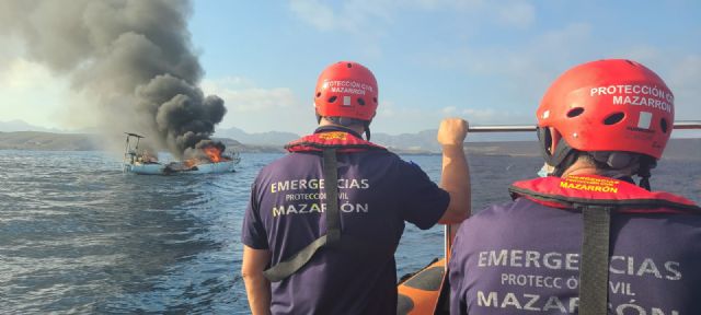 Esta tarde se recibía una llamada en el 112 en la que se alertaba de que una embarcación de vela se encontraba ardiendo frente a la playa de Percheles. Rápidamente, desde Protección Civil Mazarrón y el Servicio de Vigilancia y Salvamento en Playas se ha movilizado la moto de agua del puesto Oasis-Bolnuevo que ha acudido al rescate del único tripulante de la navegación.