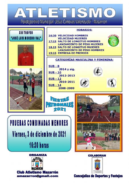 Esta misma mañana se ha presentado en el Salón de Actos del Ayuntamiento de Mazarrón se ha presentado el XIII Trofeo "José Luis Moreno Val". El club deportivo de Mazarrón, ha organizado el XIII Trofeo "José Luis Moreno Val", que consistirá en pruebas combinadas menores en las que participarán niños del municipio de 7 a 14 años. Este trofeo se celebrará el 3 de diciembre a partir de las 16:30 en el Polideportivo Municipal Jesús Cánovas Valenzuela.