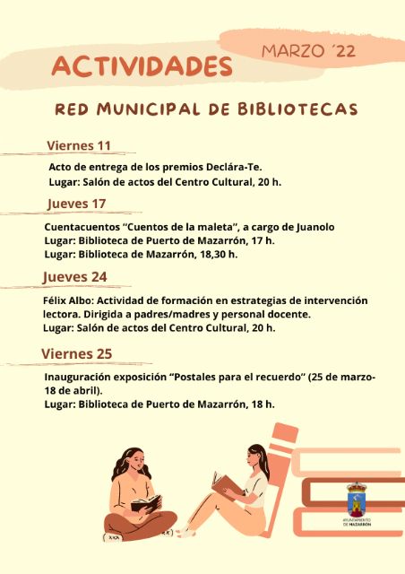 Llega el mes de marzo y la red municipal de bibliotecas estrena programación, la Concejala de Educación, Archivo y Bibliotecas presentaba las diferentes actividades que se van a poder disfrutar en las bibliotecas del Municipio de Mazarrón durante este mes.