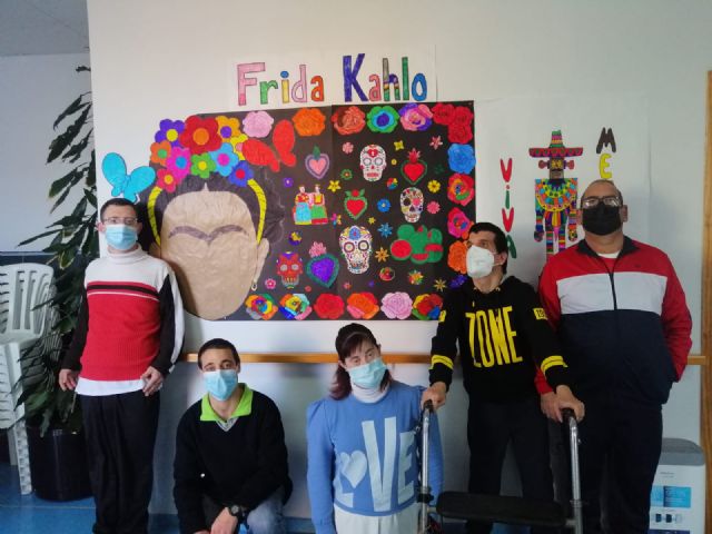 Entre otras actividades se ha trabajado la figura de Frida Khalo. Los usuarios del Centro de día de personas con discapacidad junto con los monitores han estudiado su historia, obra y se ha elaborado para ello un mural resumen de todo lo asimilado en la jornada.