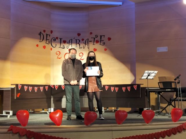 El salón de actos de la Casa de la Cultura de Mazarrón acogía anoche la entrega de premios del Certamen de poemas de amor DECLÁRA-TE que cumple su décimo aniversario.