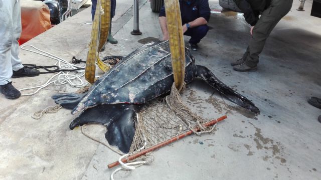 Un ejemplar de tortuga laúd con numerosas lesiones ha sido rescatado en el día de hoy aguas de Mazarrón y trasladado posteriormente por personal de la Dirección General de Medio Natural y del Centro de Recuperación de fauna silvestre al centro especializado de recuperación de fauna marina del Oceanogràfic de Valencia.