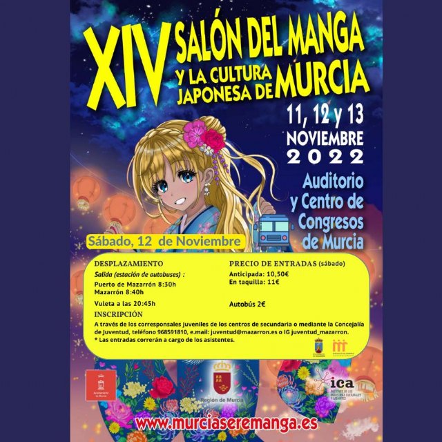 Vuelve una nueva edición del salón del Manga y la Cultura Japonesa a Murcia, y con ello, la Concejalía de juventud pone a disposición de los jóvenes el transporte para que puedan disfrutar un año más de todas las actividades que ofrece el salón: charlas, conciertos, concursos, videojuegos, invitados...