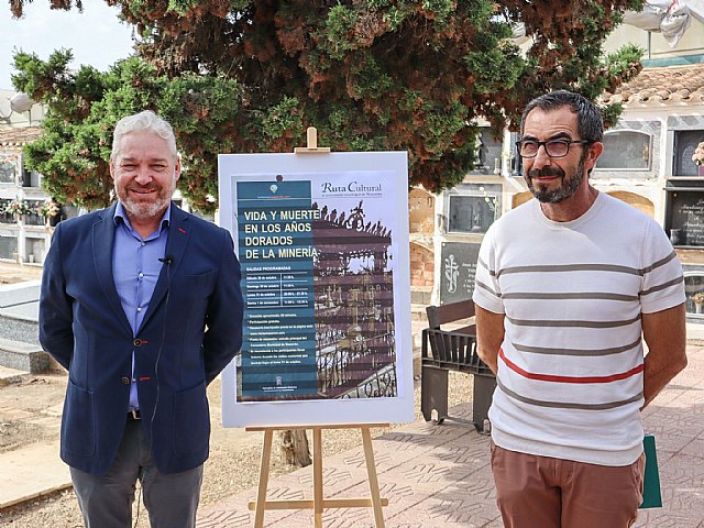 Ginés Campillo, teniente alcalde y concejal de Cultura y Patrimonio Histórico, y Miguel Rubio, periodista y guía responsable de las rutas culturales, han presentado esta mañana las seis visitas que se desarrollarán en los próximos días en el cementerio municipal de Mazarrón con motivo del puente de Todos los Santos. Se trata de visitas guiadas y gratuitas para acercar a vecinos y visitantes el legado cultural que atesora el camposanto.