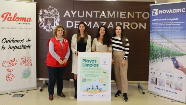 Silvia García, concejala de Juventud, ha presentado esta mañana una nueva jornada de limpieza de playas que se llevará a cabo el 27 de noviembre a las 9:30 h. en la zona del Rihuete, junto al Club de Petanca de Puerto de Mazarrón. La edil ha estado acompañada de Aurora Ruiz, de Novagric, y Elena M. Blaya, del Grupo Hortofrutícola Paloma, ya que ambas empresas mazarroneras del sector “agro” son las impulsoras de esta actividad de sensibilización ambiental en la que el consistorio colabora junto a la Asamblea Local de Cruz Roja Española que ha estado representada en el acto por su presidenta, Carmen Navarro.