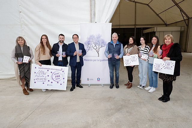 La presentación de esta campaña ha contado con la asistencia del Alcalde de Mazarrón Gaspar Miras, el Teniente de Alcalde Ginés Campillo y el Concejal de Política Social, Igualdad y Festejos Miguel Ángel Peña, acompañados de trabajadoras de la Concejalía de Igualdad del Ayuntamiento de Mazarrón.