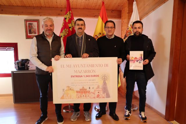 El cheque entregado por parte de Miras, Campillo y Peña por valor de 1.343 euros obtenidos de la venta del libro de las Fiestas Patronales 2022, ha sido recibido por Juan Zamora, Presidente de ASPADEM, que ha querido agradecer este gesto por parte del Ayuntamiento de Mazarrón.