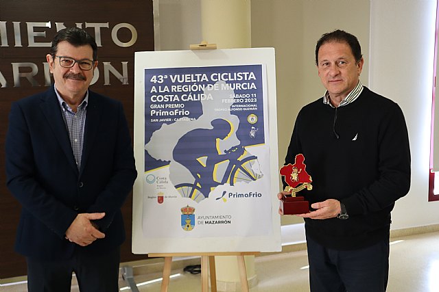 El Alcalde de Mazarrón Gaspar Miras, acompañado de Francisco Guzmán director general de la Vuelta Ciclista a la Región de Murcia “Costa Cálida”, han presentado la Meta Volante de Mazarrón. Esta prueba atravesará Mazarrón el próximo 11 de febrero por la Avenida Constitución, donde estará situada la Meta Volante “Memorial Mariano Rojas”. La hora prevista para el paso de los deportistas por el término municipal será sobre las 16.00h.