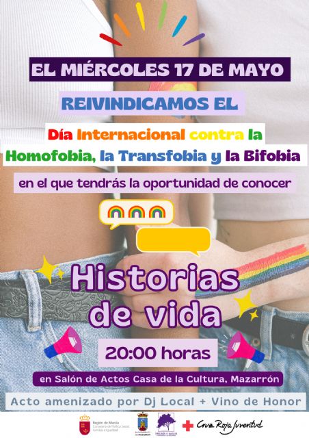 MAZARRÓN REIVINDICA EL DÍA INTERNACIONAL CONTRA LA HOMOFOBIA, LA TRANSFOBIA Y LA BIFOBIA EN UN ACTO DONDE SE DARÁ A CONOCER DIFERENTES TESTIMONIOS E HISTORIAS DE VIDA DE PERSONAS DEL COLECTIVO LGTBIQ+
