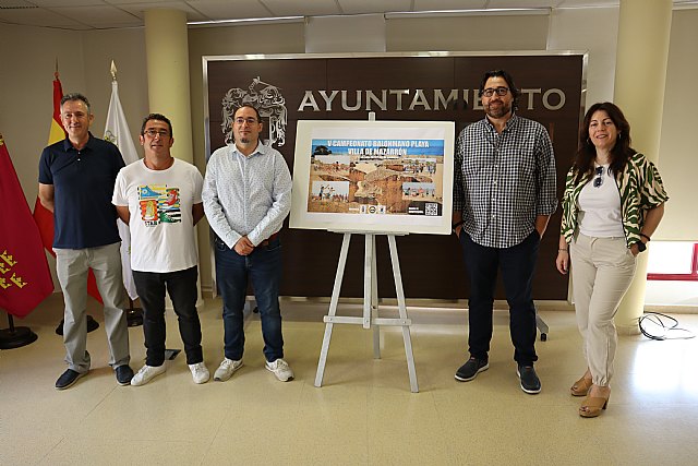 La Playa de Bolnuevo acogerá los próximos 1 y 2 de julio el V Campeonato de Balonmano Playa “Villa de Mazarrón”. La presentación se ha llevado a cabo por parte del Concejal de Deportes en funciones Francisco José García, acompañado de Daniel Santos, Presidente de la Federación Murciana de Balonmano, y José Tomás Gallego, presidente de la Asociación de Balonmano “Villa de Mazarrón” junto a miembros de la misma.