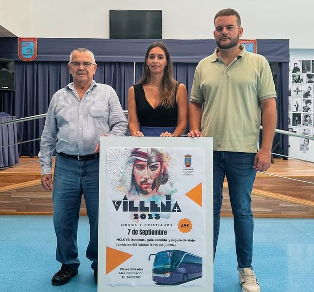 El Consejo de Participación del Centro de Día de Mayores ha programado para el próximo 7 de septiembre una excursión a las Fiestas de Moros y Cristiano de Villena (Alicante). Se trata de una actividad subvencionada por la Concejalía de Mayores, está dirigida personas de más de 55 años, tiene un precio de 45 euros e incluye transporte, guía, comida en el restaurante Pío XII de Jumilla y seguro de viaje. Las inscripciones pueden realizarse en el 968 59 26 31.