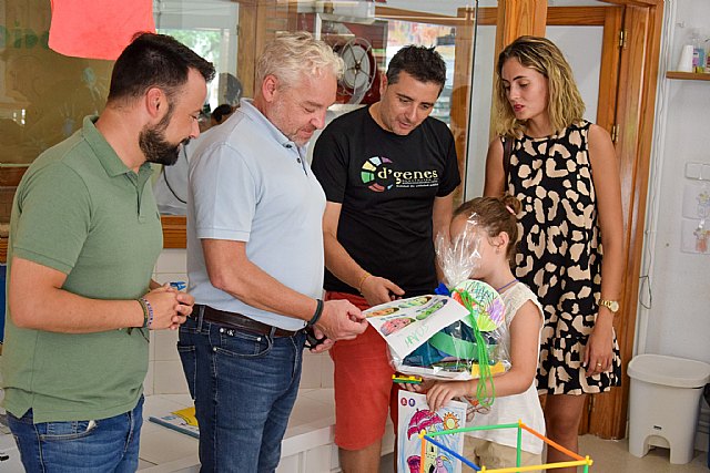 El Ayuntamiento de Mazarrón, a través de las Concejalías de Igualdad y Política Social, ha apostado otro verano más por la conciliación familiar y la inclusión con el desarrollo de una escuela taller durante las vacaciones estivales de los menores. Ahora, aprovechando el final de curso de los talleres desarrollados en el municipio, el alcalde de Mazarrón, Ginés Campillo, ha visitado las instalaciones de los centros educativos donde se han desarrollado las diferentes actividades que han conformado la edición 2023 de la escuela taller de verano. Junto al regidor, han asistido también el concejal de Igualdad, Miguel Ángel Peña, y la concejala de Política Social, María Isabel Carrillo.