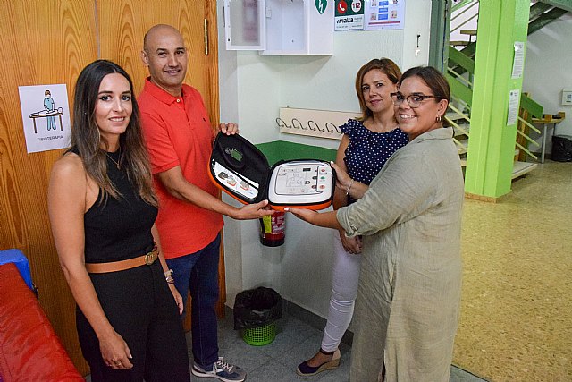 La concejala de Educación, Silvia García, ha asistido al acto de donación de un desfibrilador al Aula Abierta del Colegio Francisco Caparrós por parte de la Asociación de Madres y Padres del centro.