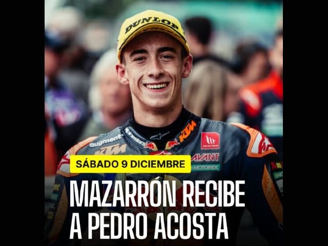 Este próximo sábado 9 de diciembre, Mazarrón se vestirá de gala para recibir con entusiasmo y orgullo a su ilustre vecino, el piloto Pedro Acosta, flamante Campeón del Mundo de Moto2. Los mazarroneros se preparan para rendir homenaje a este joven talento que ha llevado el nombre del municipio a lo más alto del motociclismo mundial.
