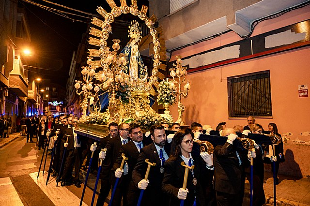 Por la tarde se volvió a poner de manifiesto la pasión  por la Purísima con la procesión con la sagrada imagen por las calles de la localidad. El cortejo partió del Santuario encabezado por la banda de tambores de la Cofradía de Nuestro Padre Jesús, hermandad que organizó la Semana Santa este año; seguidamente la Agrupación de Infantes de la Virgen, las damas de Nuestra Señora, la reinas de las fiestas juvenil e infantil, alcaldes pedáneos, el Alcalde Ginés Campillo y la corporación municipal, otras autoridades políticas y civiles de la sociedad mazarronera; y cerrando la banda maestro Eugenio Calderón.