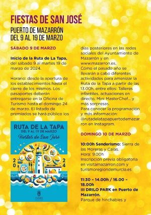 Horario: desde la apertura de los establecimientos hasta el cierre de los mismos. Los pasaportes deberán entregarse en la Oficina de Turismo hasta el domingo 24 de marzo. El listado de premiados se hará público los días posteriores en las redes sociales del Ayuntamiento de Mazarrón y en www.mazarron.es,