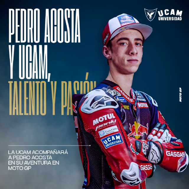 La Universidad Católica de Murcia (UCAM) ha sumado a sus filas a Pedro Acosta, una de las grandes estrellas del Campeonato del Mundo de MotoGP. Conocido como el 'Tiburón de Mazarrón', Acosta, actual campeón del mundo de Moto 2 y quien esta temporada ha dado el salto a la categoría reina y se muestra feliz por este paso: "Es un orgullo estar unido a la familia de la UCAM, una entidad emblemática y que siempre ha apostado por el deporte. Estoy seguro de que será una alianza duradera y que juntos lograremos grandes éxitos. Siempre es un placer lucir los colores de entidades que pertenecen a nuestra tierra, Murcia".