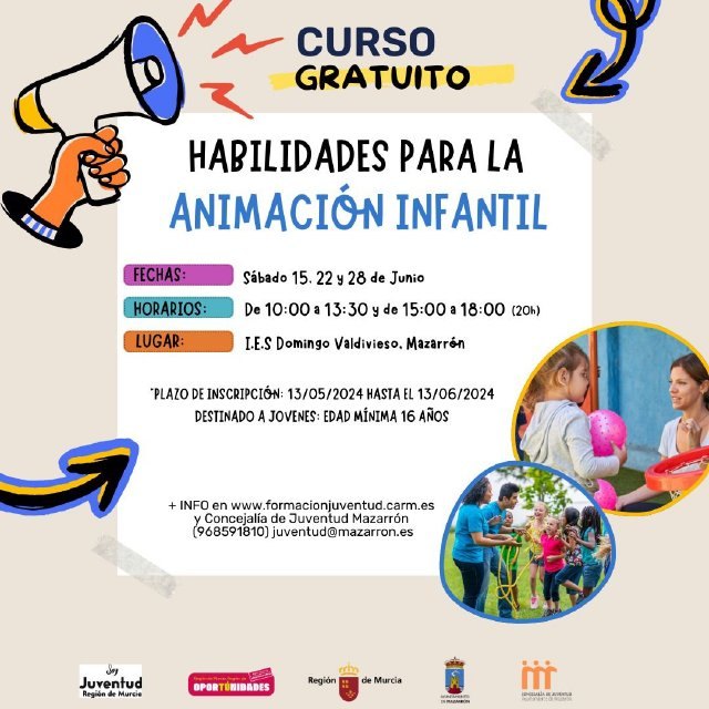 El anuncio se produce tras una encuesta realizada en la red social oficial de la concejalía (juventud_Mazarrón), donde el curso "Habilidades para la Animación Infantil" emergió como el más demandado entre las múltiples opciones propuestas. "Este curso es una respuesta directa a la voz de nuestros jóvenes, que activamente eligieron esta capacitación como prioritaria", afirmó Silvia García.