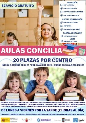 El programa "Aulas Concilia" dispone de 20 plazas por centro, distribuidas en los siguientes centros educativos: