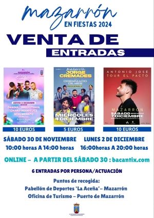 Las Fiestas Patronales de Mazarrón 2024 prometen ser inolvidables con un cartel repleto de actuaciones musicales y humorísticas con las que disfrutarán vecinos y visitantes. La Concejalía de Festejos del Ayuntamiento de Mazarrón ha anunciado la apertura de la venta de entradas para los eventos destacados de las fiestas, con artistas de renombre y propuestas para todos los gustos.