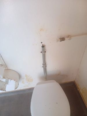 En el aseo femenino, se han robado el candado, las tuberías y el pulsador del inodoro.