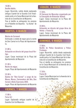 El Carnaval de Mazarrón 2025 contará con una amplia variedad de actividades, incluyendo desfiles, concursos y espectáculos que convertirán las calles del municipio en un escenario de fiesta y diversión.